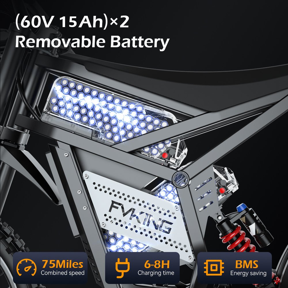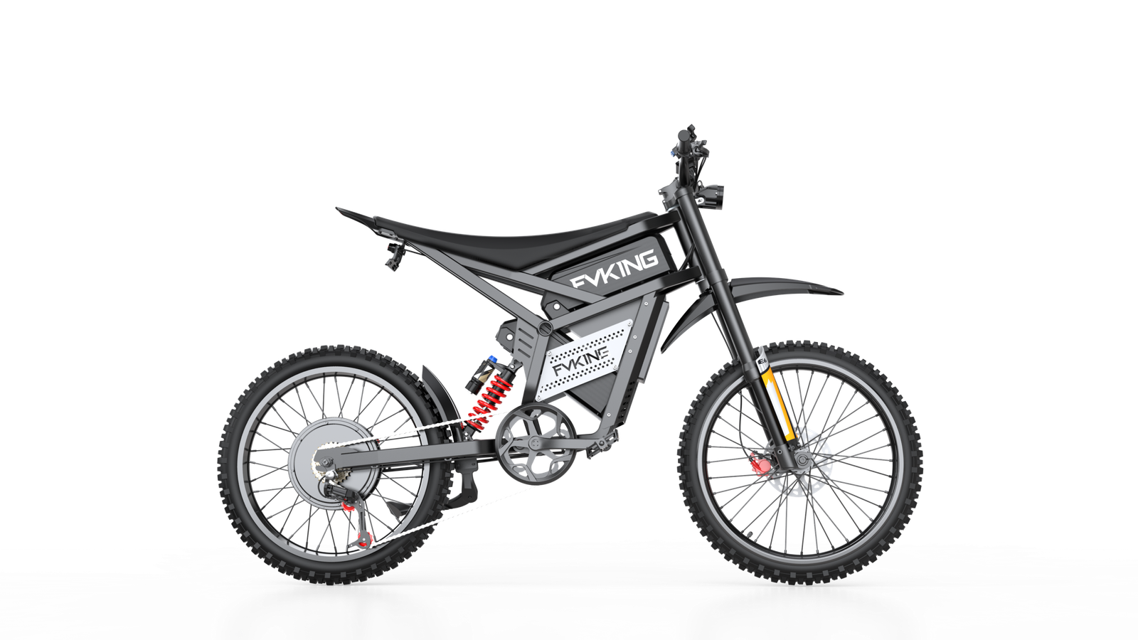 The FVKING E6Ultra is a high-performance electric dirt bike designed to deliver a pulse-pounding riding experience. Powered by a 3000W motor, a 60V 30Ah battery pack, and a top speed of 53 mph, this electric vehicle demonstrates exceptional performance with a maximum range of up to 55 miles. Equipped with a full suspension system, hydraulic brakes, and 19-inch off-road tires, it ensures a comfortable and stable ride across any terrain. Suitable for riders between 5’5″ and 6’5″ in height with a maximum load capacity of 330 lbs, the FVKING E6Ultra is a versatile and ideal choice for outdoor enthusiasts.