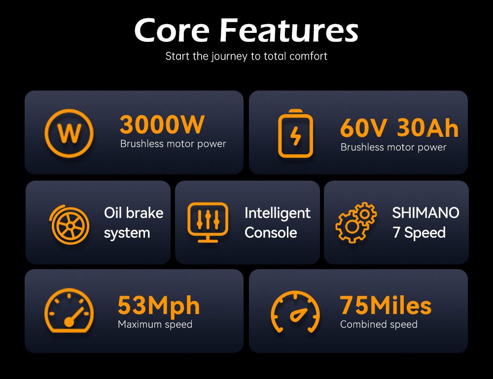 Bikes with 30Ah (1800Wh) batteries provide longer range and power for long rides. With higher energy density, it ensures reliable and efficient power transfer, thereby enhancing the overall riding experience.