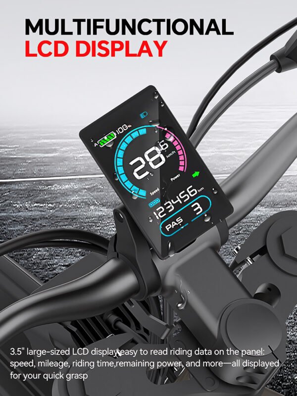Place the NFC card that comes with the R19 below the 3.5″ color display (the sensor is slightly below the display) to unlock the off-road electric bike. It should be noted that when the bike is just unlocked or the bike has been stationary for 3 seconds, the R19 will enter the neutral setting and display the “P” gear position, and the bike will not start when the throttle is twisted. You need to hold the brake handle tightly to resume the throttle.